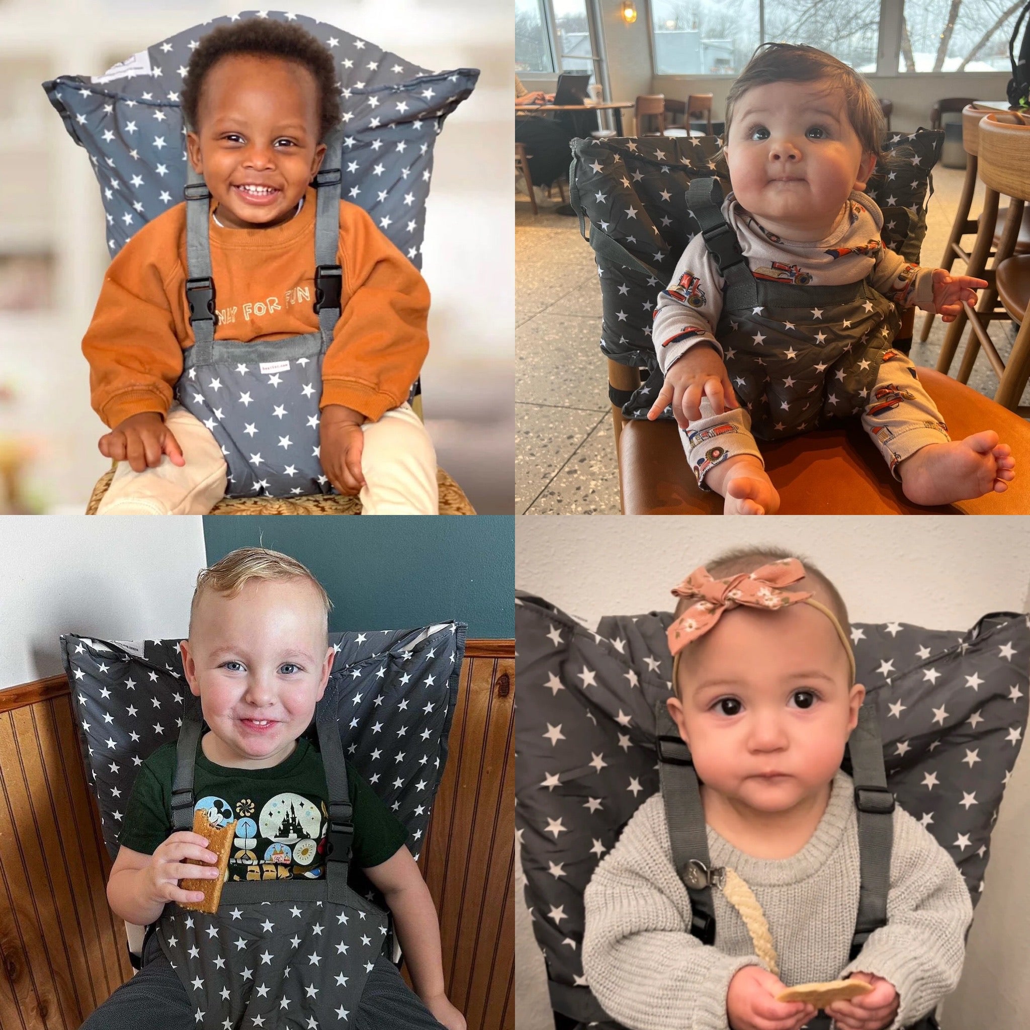 The Portable High Chair that can be used on ANY chair ANYWHERE, ANYTIME!